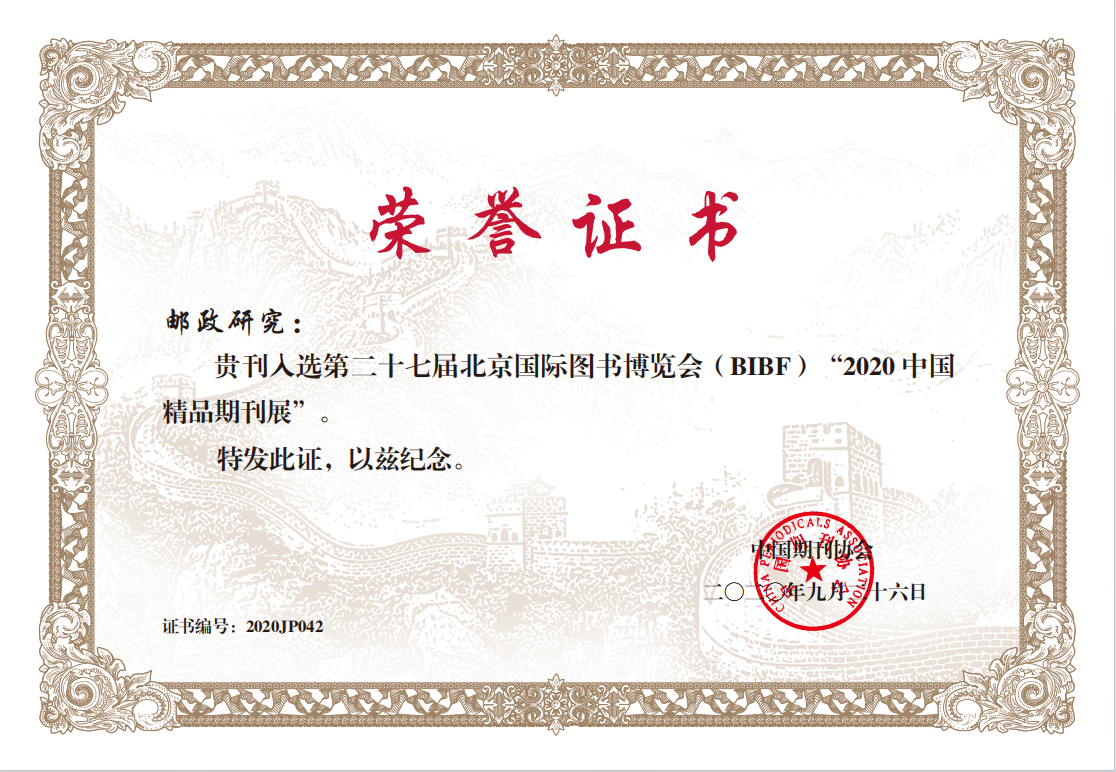 ·2020年9月,入选中国期刊协会“2020中国精品期刊展”。