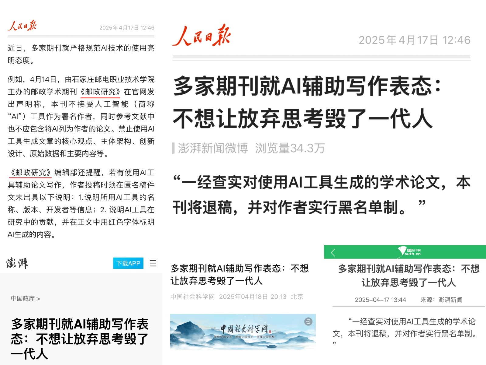 ·2025年4月,期刊管理举措被澎湃新闻、人民日报客户端及微博、中国青年网、中华网、新华报业网、中国妇女网、中国社会科学网、科学网、腾讯网、搜狐网、新浪网、网易、大众网、北京日报客户端等20多家权威媒体宣传报道。